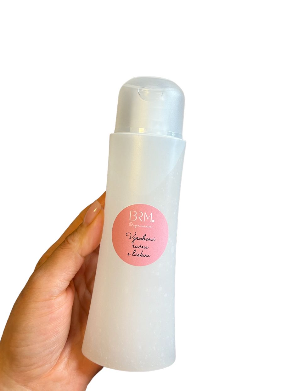 šampón z aloe vera, v bielej fľaštičke, drží ho rukaŠampón na všetky typy vlasov